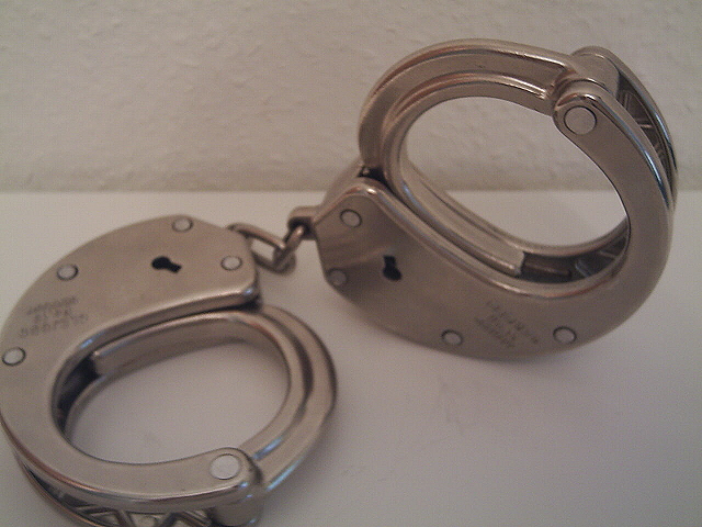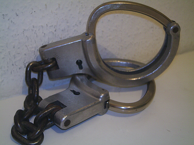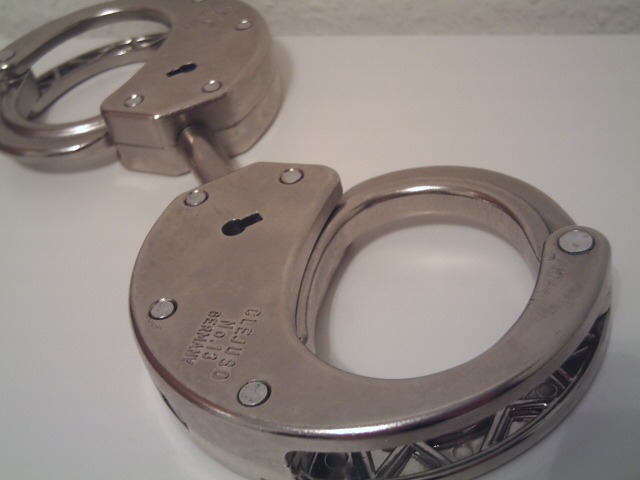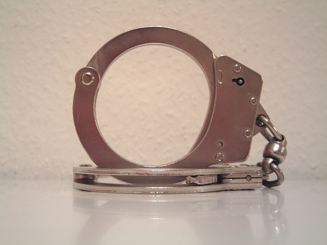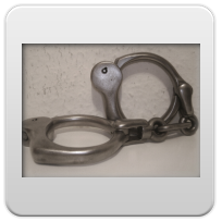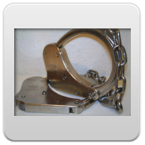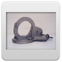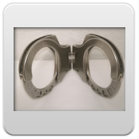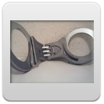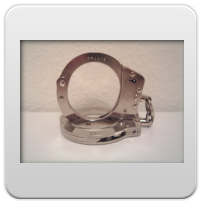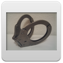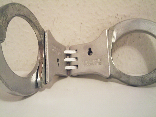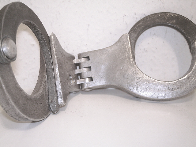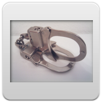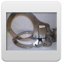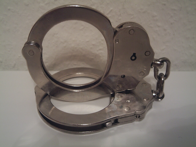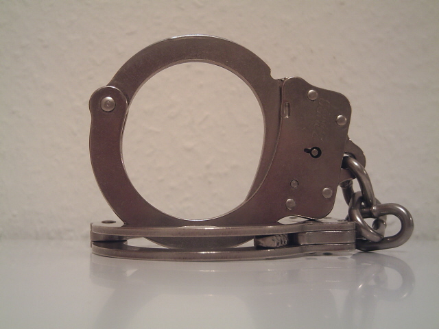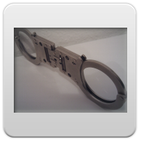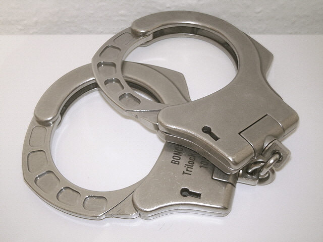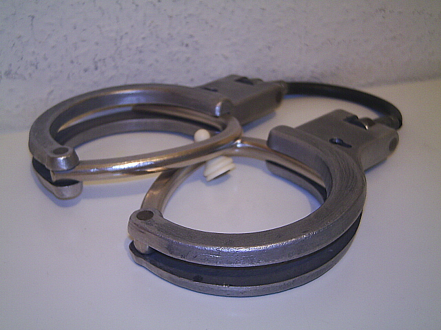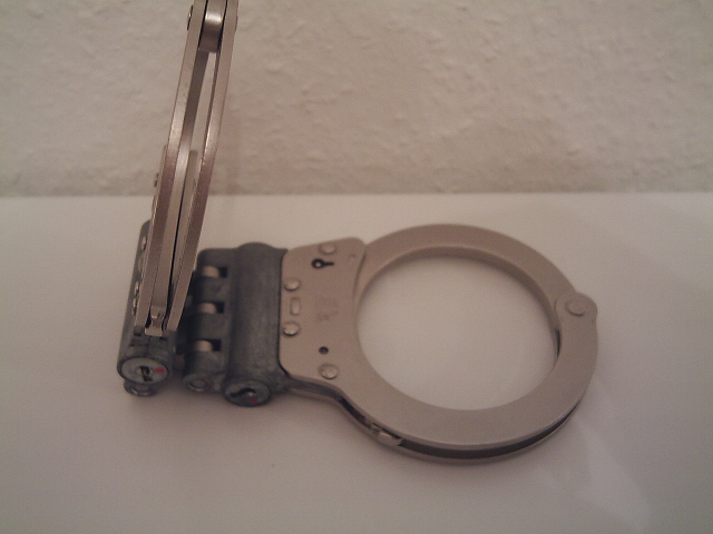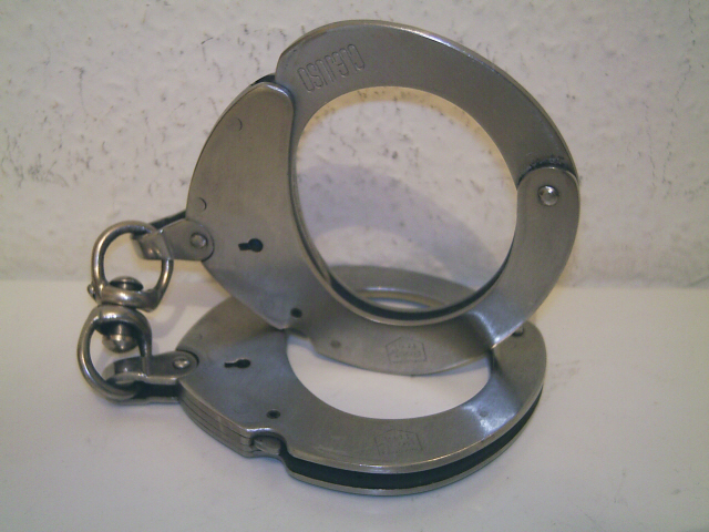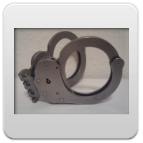 Moderne, zeitgemäße Handschellen im aktuellen Gebrauch mit flachem Gehäuse und durchschwingenden Zahnbügeln, die in eine Ratsche einrasten. Viele Modelle haben Besonderheiten was Optik oder Technik anbelangt.