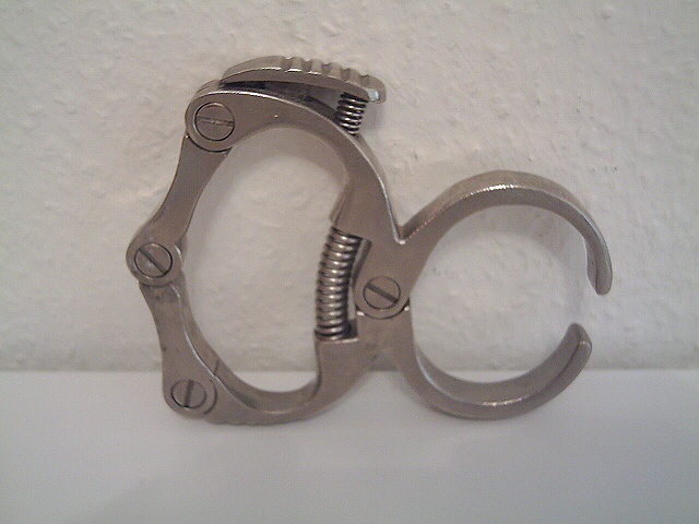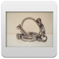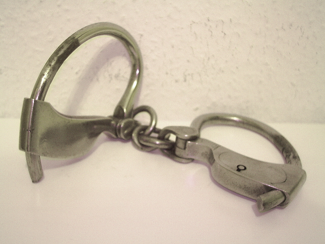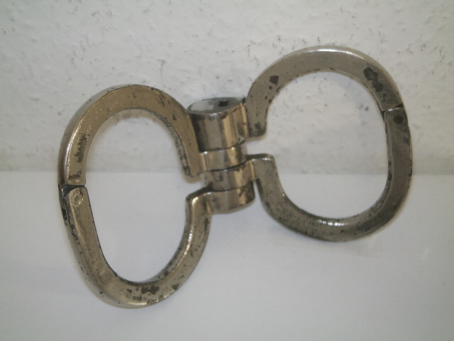Aus dem späten 19. und dem frühen 20. Jahrhundert, vor dem modernen Typ, verstellbar, aber nicht durchdrehend. Die Kette sitzt am Drehpunkt der Schellen an. Die Verschlusspositionen sitzen bereits auf einer Kreislinie um diesen Drehpunkt, die Verschlüsse sind außen. Es gibt auch nichtamerikanische Modelle dieses Typs.