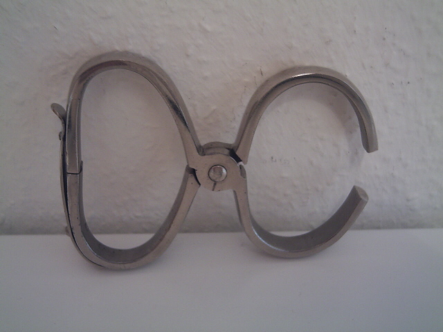 Auch sortiere ich die Handschellen nicht alphabetisch nach Namen oder vorrangig nach Ländern, sie sind vielmehr nach ähnlichen Eigenschaften gruppiert. Dadurch kann sich allerdings sekundär auch eine de-